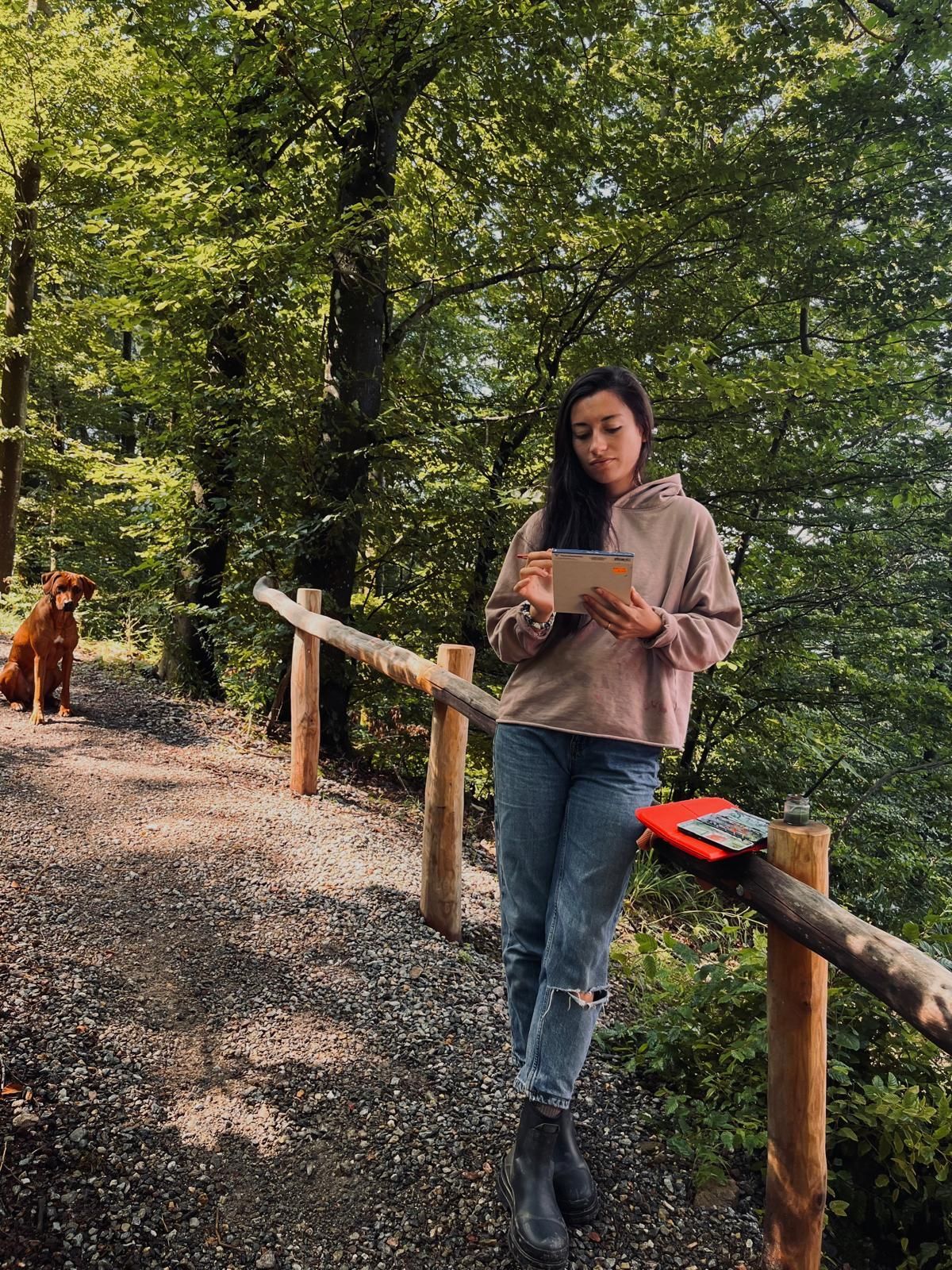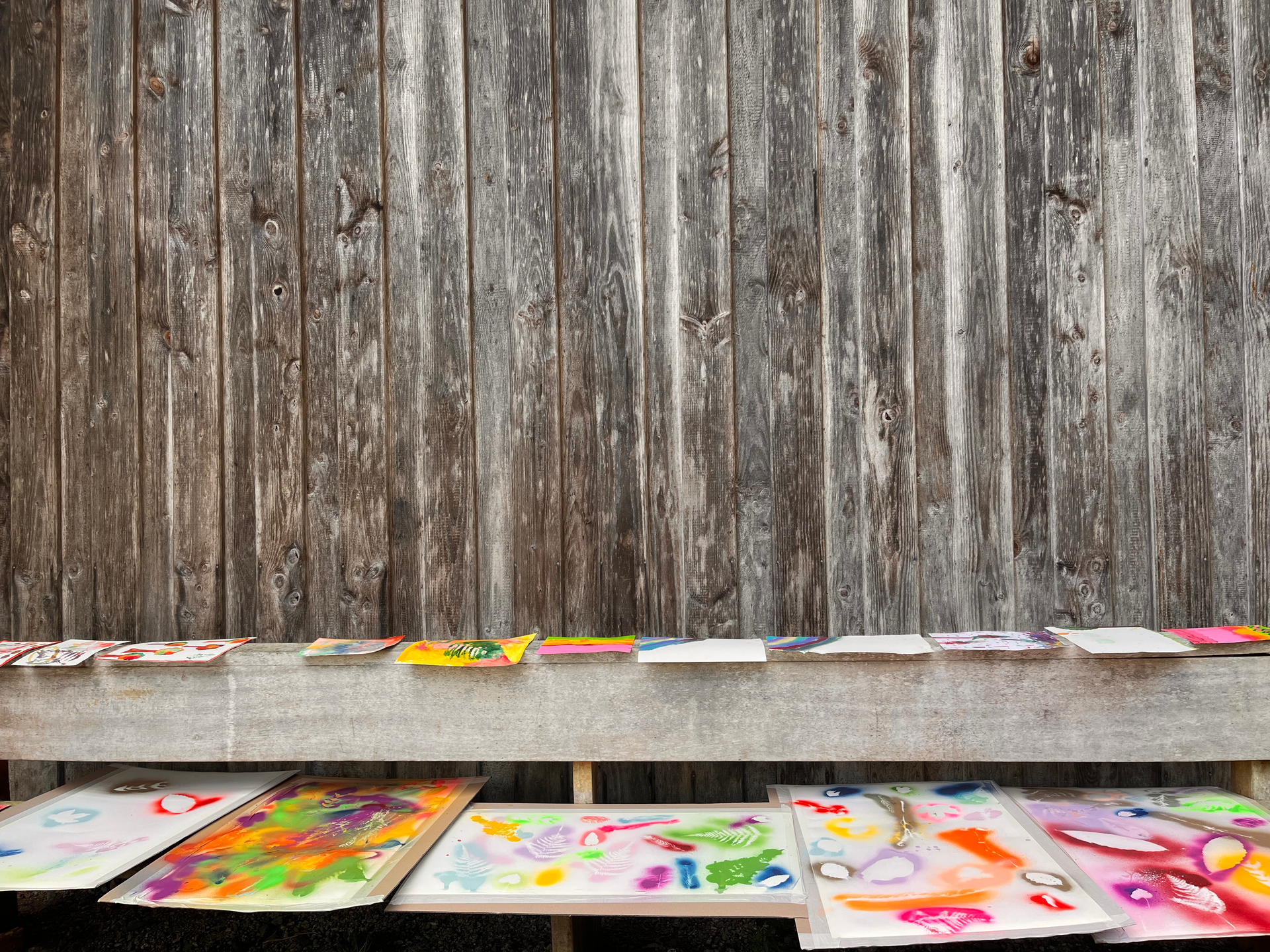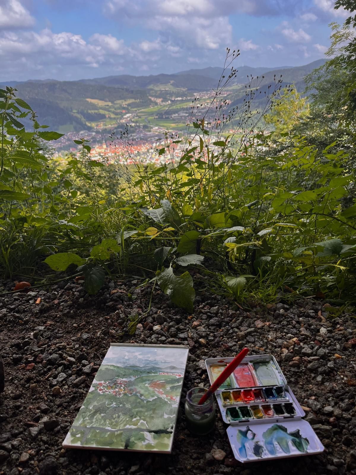 zu viert sind wir Vormittags zur Sandhaasenhütte gewandert (ca. 1h), dann die wunderbare Aussicht genossen & uns ca. 2,5h malerisch ausgelebt. Über Bilder von Landschaften, Fauna und Flora bis phantastischen Kraftbildern war alles dabei. Nicht ergebnisorientiert sondern prozessorientiert. Es zählt nur, wie man sich während dem Kreativ sein fühlt.
